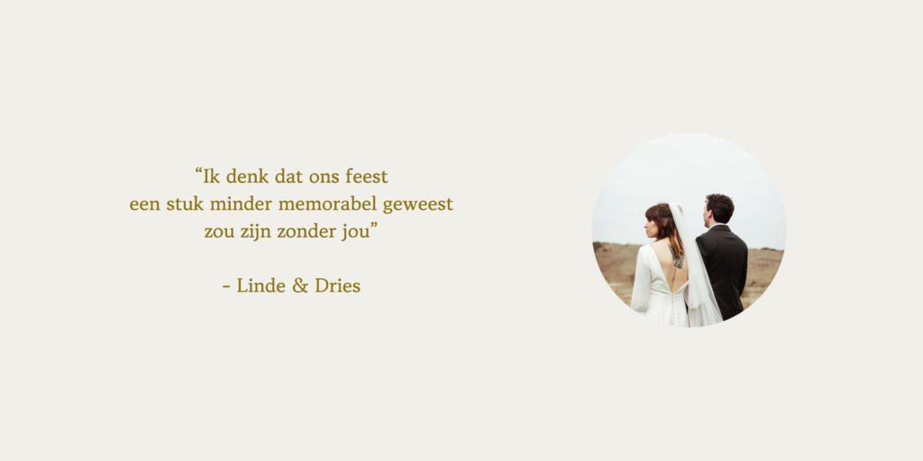 No worries. Jullie hebben vanaf de aankoop van jullie Ready To Go moodboard tot en met jullie trouwdag een hulplijn.