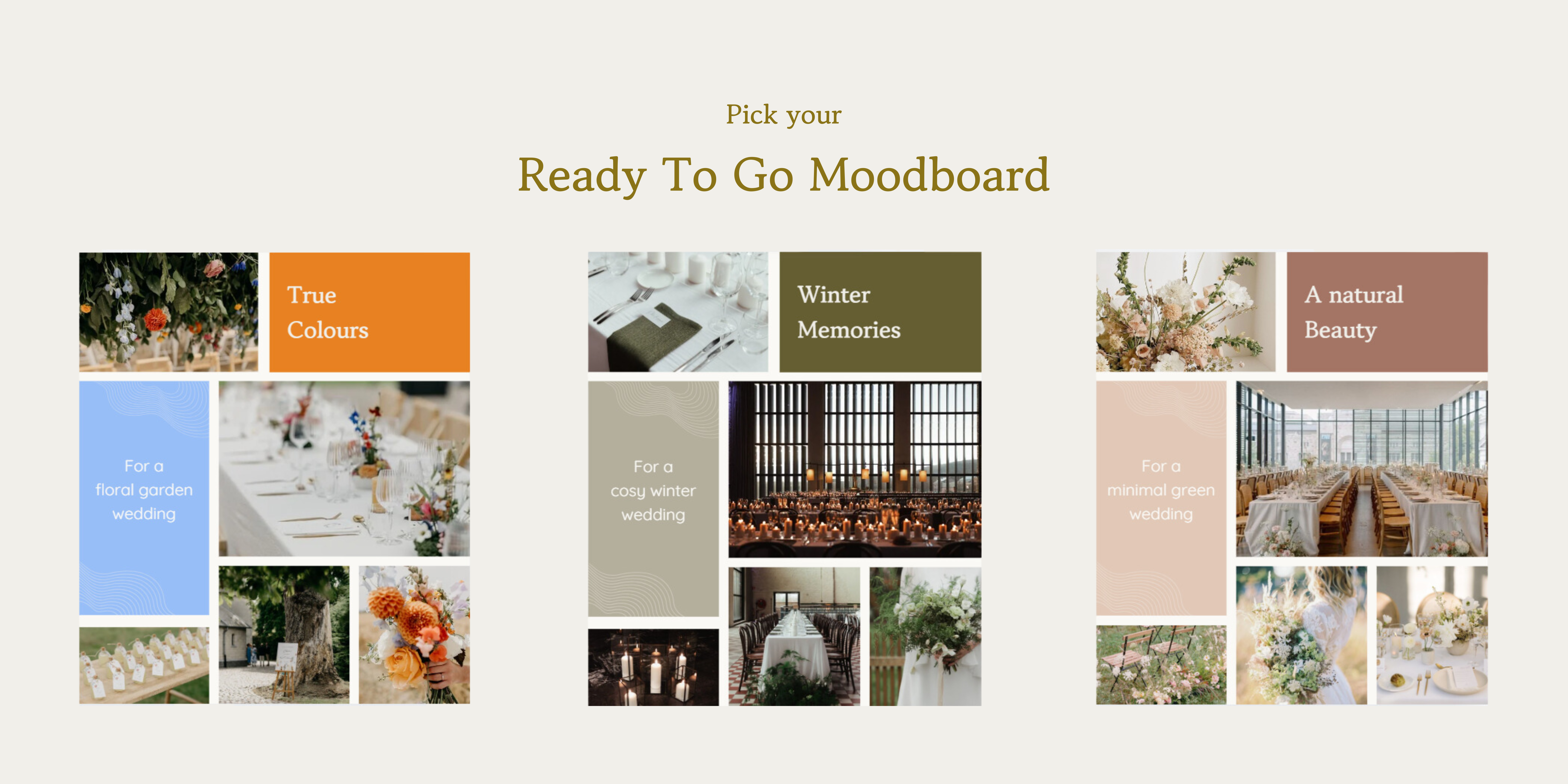 Het is een kant-en-klaar moodboard waarmee jullie eigenhandig jullie trouw van ceremonie tot avondfeest kunnen stylen.